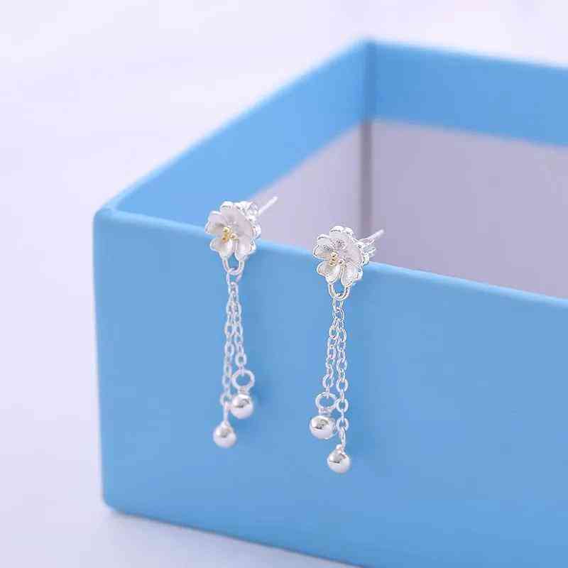 s925純銀針櫻花耳環(huán)簡約氣質(zhì)文藝清新花朵耳墜超仙流蘇百搭耳飾