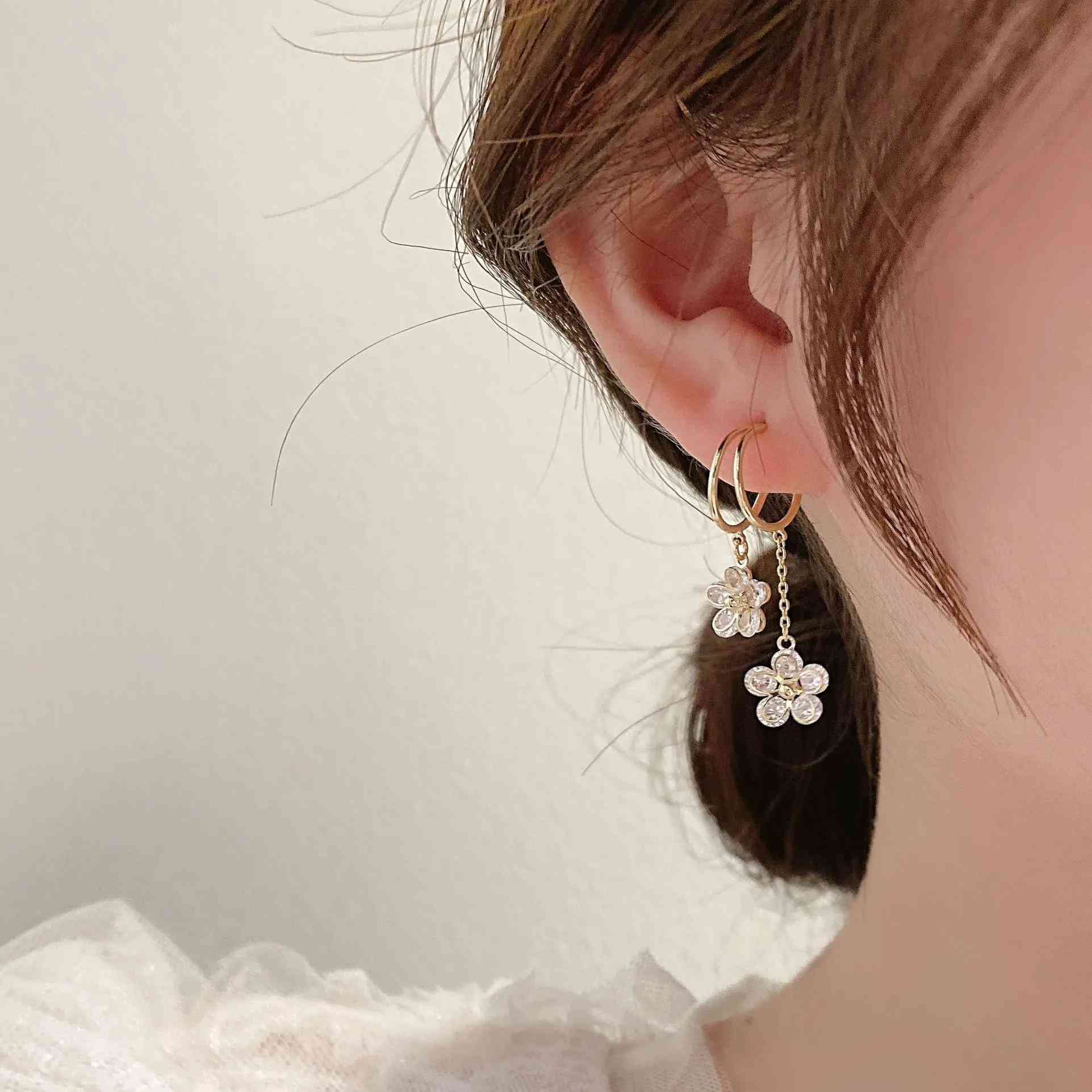 流蘇耳墜水鉆花朵耳環(huán)女2022新款小眾設(shè)計(jì)感高級(jí)耳飾純銀輕奢耳扣