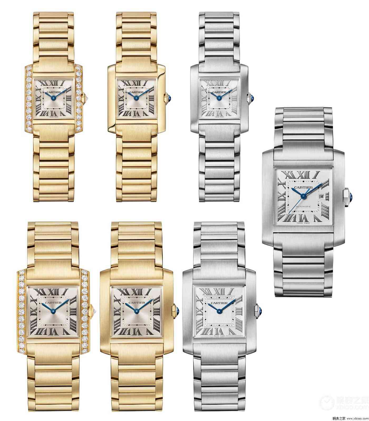 卡地亞新一代法國坦克,有3種尺寸。小號、中號是女表,大號是男表。