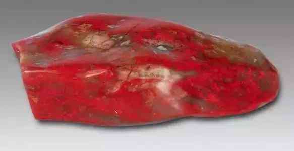 內(nèi)部結(jié)構(gòu)晶質(zhì)集合體,致密塊狀,放大檢查:“血”呈微細(xì)粒或細(xì)粒狀,成片或零星分布于“地”中。土狀光澤,蠟狀光澤至玻璃光澤。摩氏硬度:2~3。密度:2.53g/cm3 ~2.68 g/cm3平均為2.61 g/cm3。折 射 率:“地”約1.56(點(diǎn)測(cè)法)。