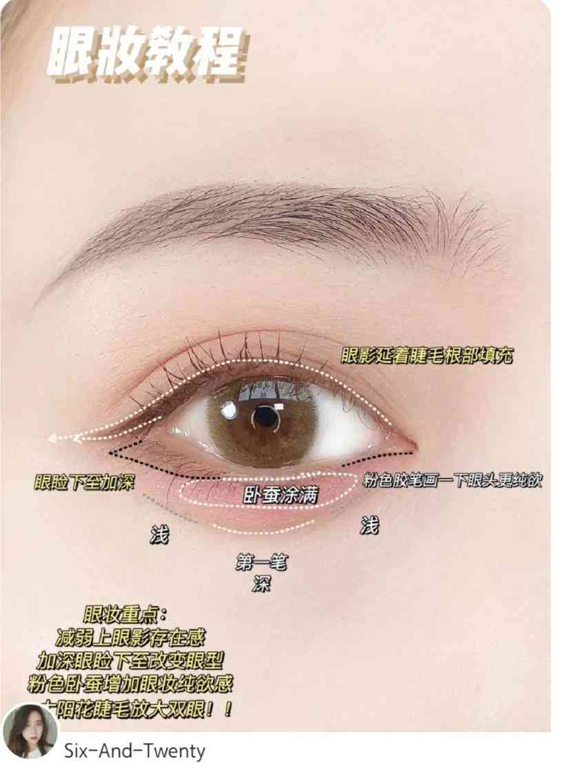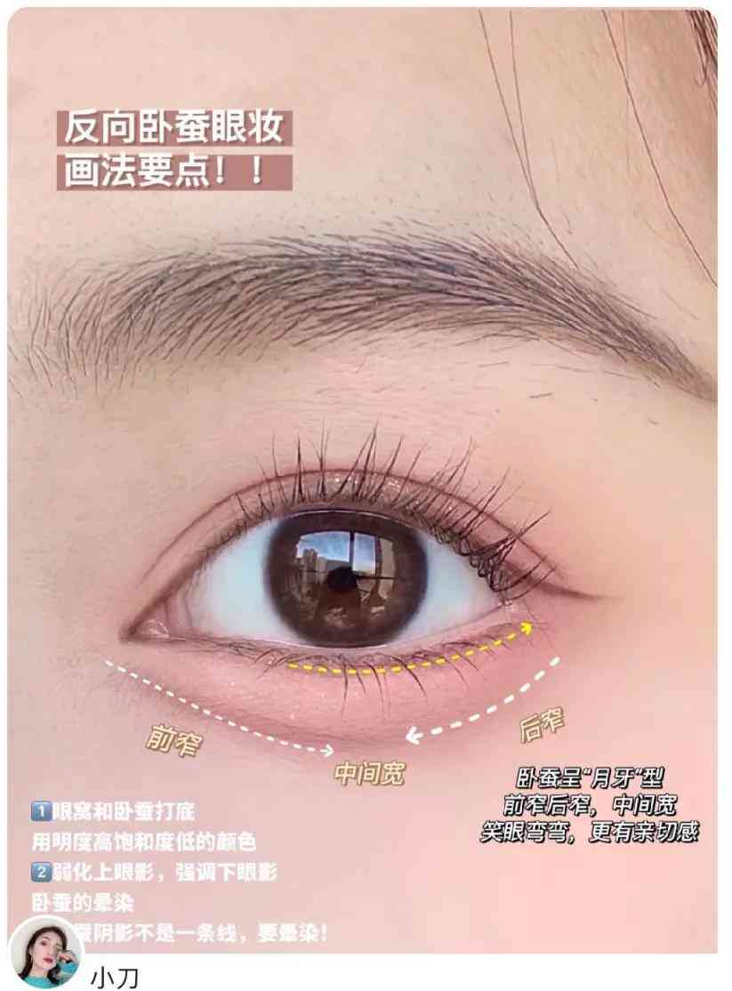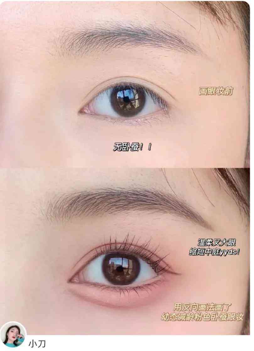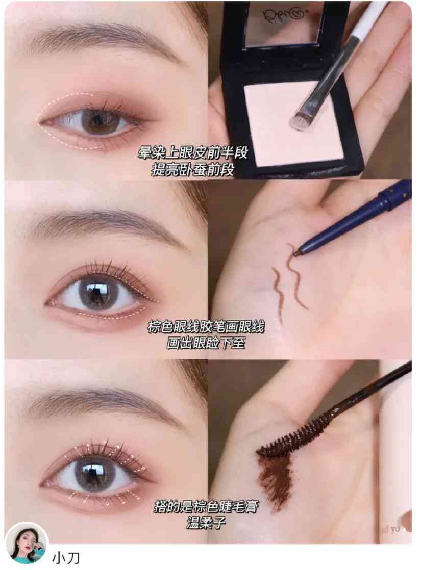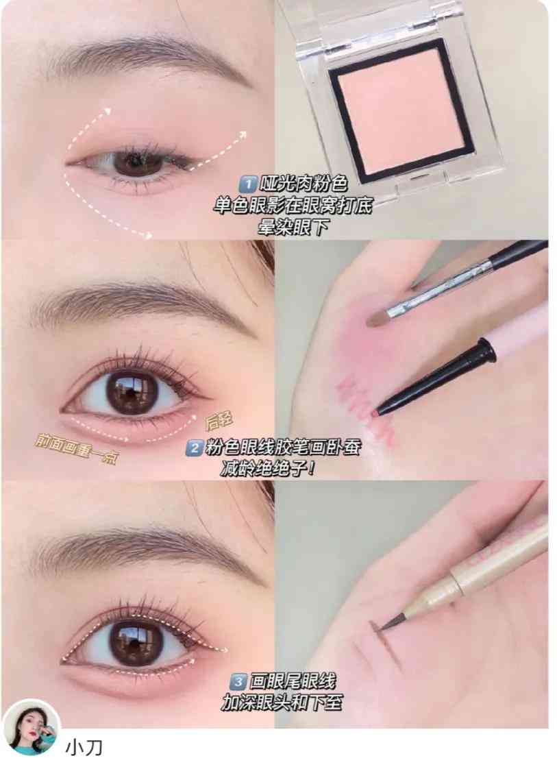 用粉色眼線膠筆來畫臥蠶,要比棕色更加自然,顏色更淺一些,搭配粉色眼影會比較和諧。