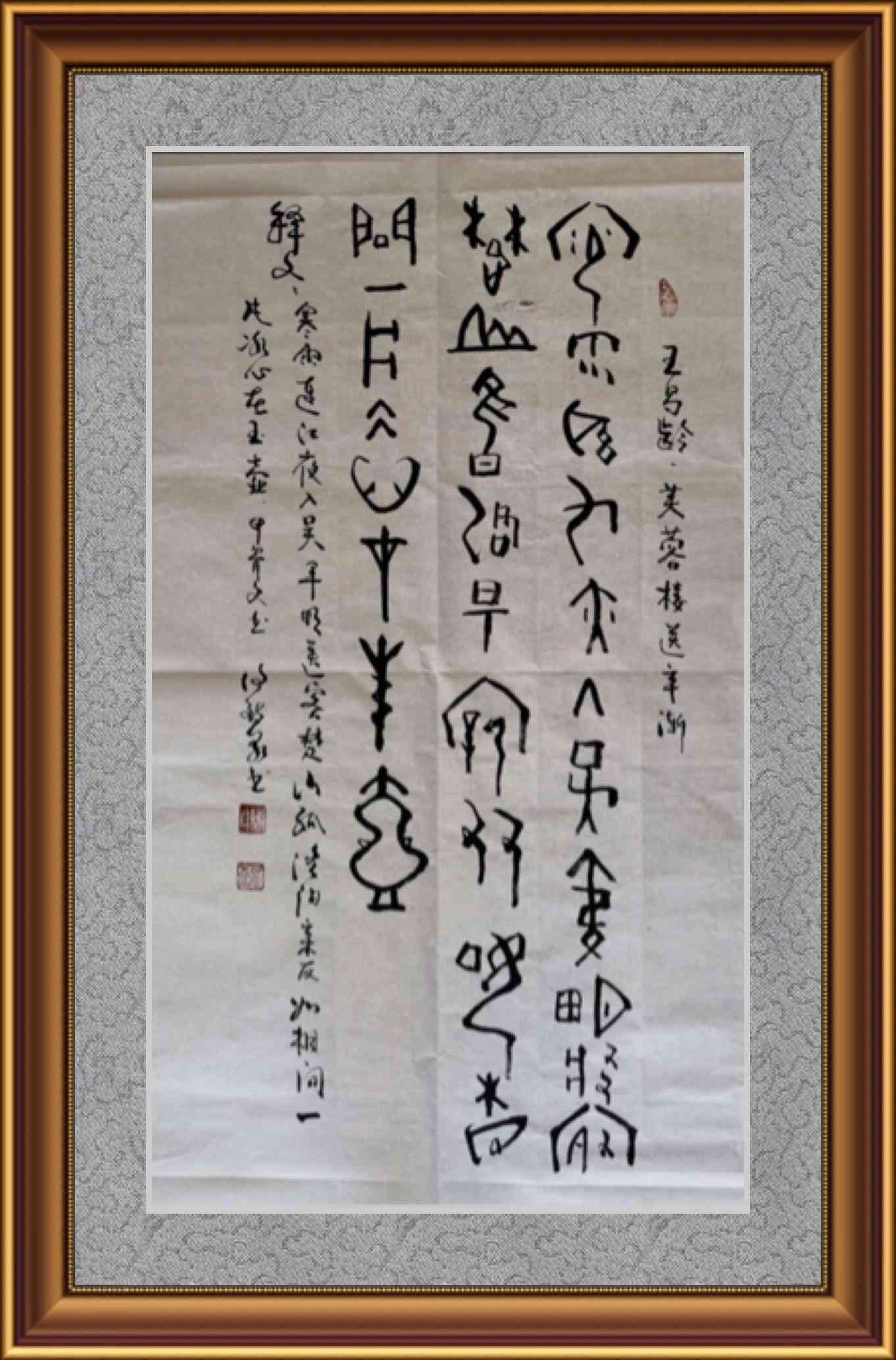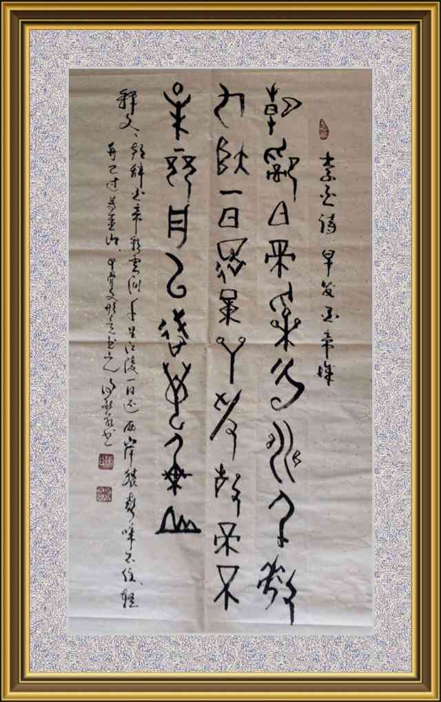 象形書(shū)法在識(shí)讀上有所困難,我做了注釋,供欣賞。