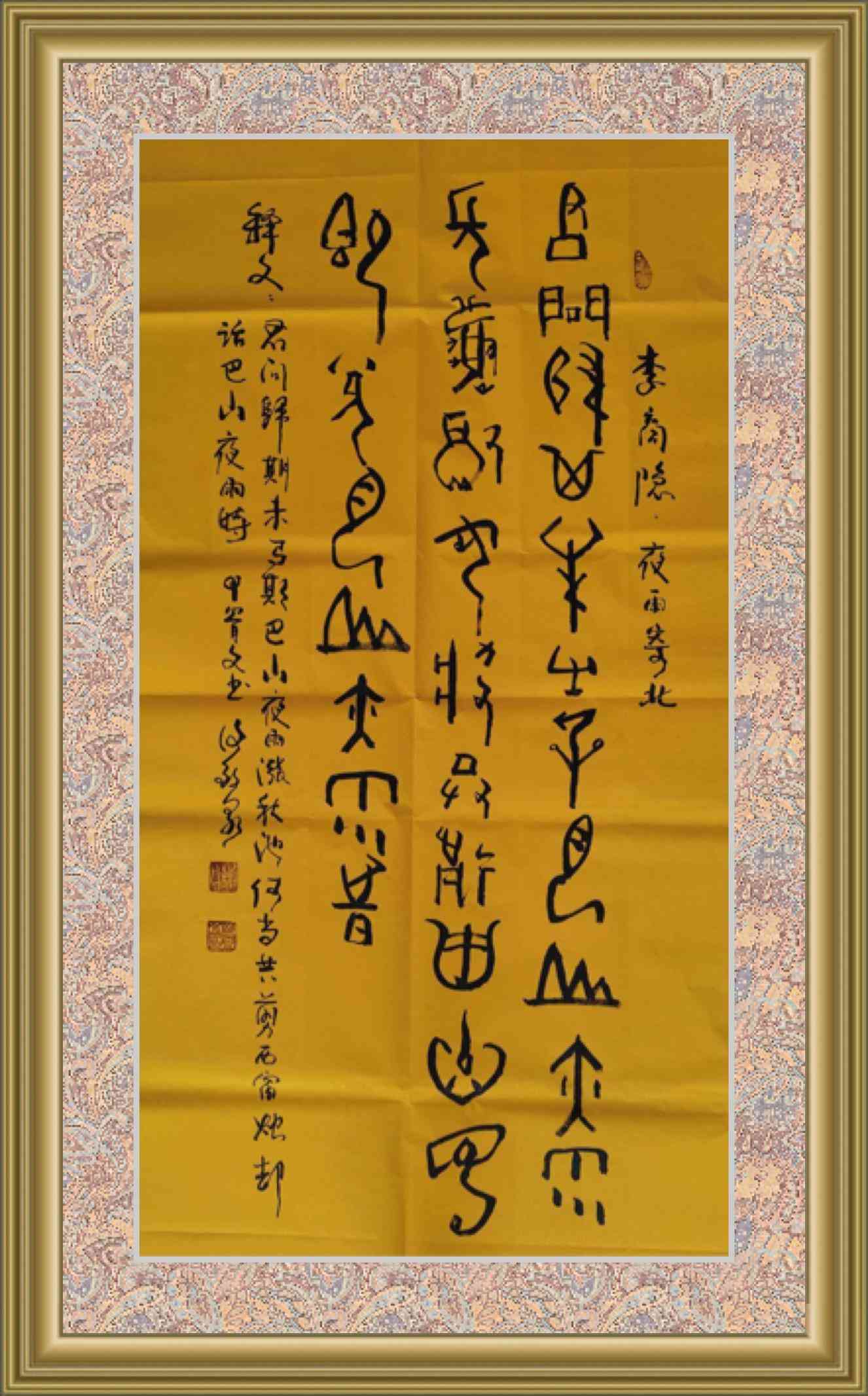 甲骨文、金文渾然一體的象形書(shū)法,這種書(shū)法作品彰顯了前所未有的書(shū)道之美。既有以柔為剛的翰墨情懷,又有象形以形象圖騰,深受大眾喜愛(ài)。