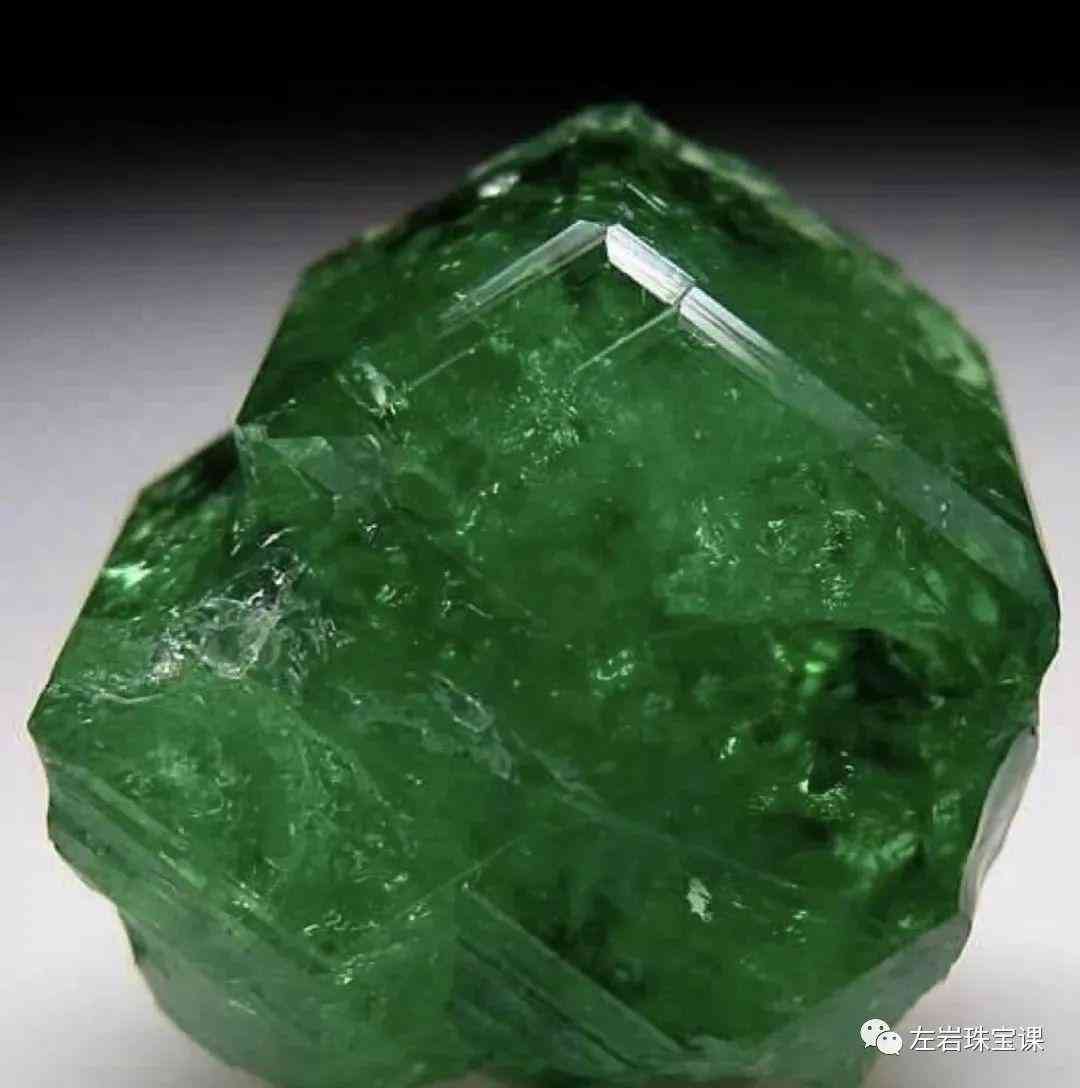 礦物名:鉻釩鈣鋁榴石,是石榴石家族之「鈣鋁榴石」中的成員