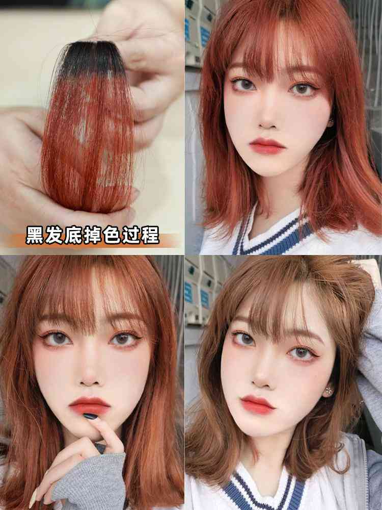 黑發(fā)底染出來(lái)是橘棕色,比較日常的發(fā)色,素顏也可以駕馭,黃黑皮也不踩雷!掉色的話也會(huì)比較慢一點(diǎn)