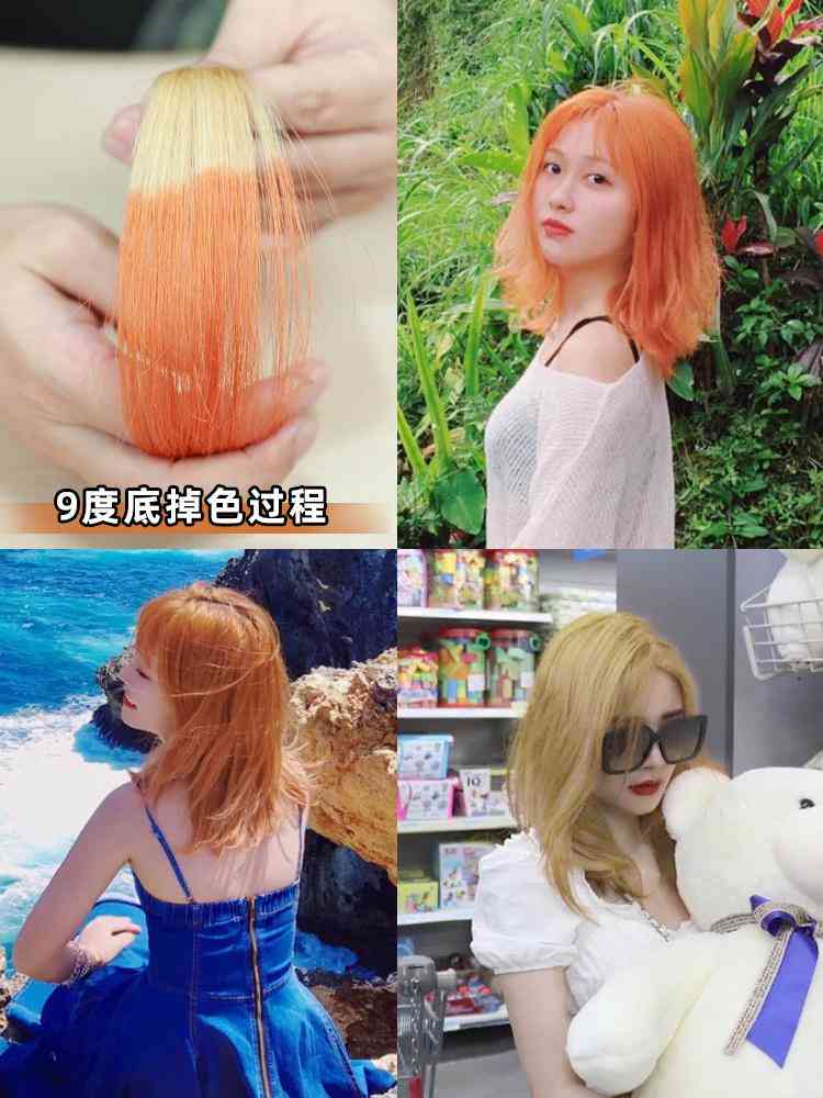9度底染出來(lái)的臟橘色過(guò)于明顯了感,有點(diǎn)熒光略的感覺(jué),除非是冷白皮然后天天化妝,不然真的都hold不住這個(gè)顏色所以盡量在5-8度的底色去染效果會(huì)好一些。