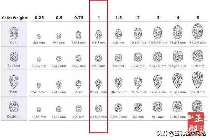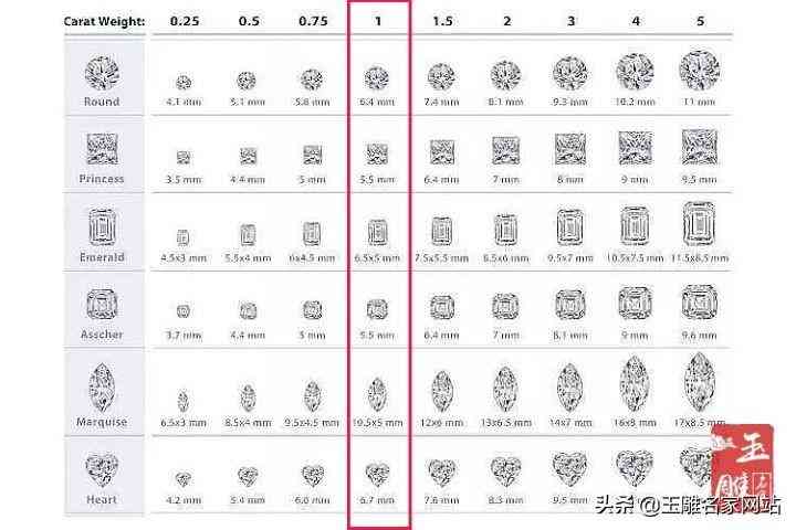 當然了,鉆石的琢形其實遠不止圓鉆一種。實際上,正方形、橢圓形甚至是愛心的形狀,都可能在鉆石中出現(xiàn)。而鉆石的形狀不同,‘一克拉鉆石多大’的答案自然也有所差別。如果是正方形的一克拉鉆石,那么它的大小就是邊長5.5mm的正方形,至于其他形狀,大家可以根據(jù)下圖中的表格來對照查看。