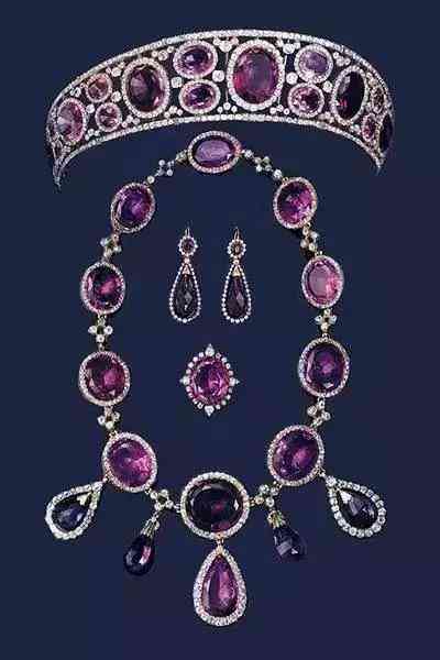 無獨(dú)有偶,瑪麗女王(荷蘭王后、英國(guó)女王)也同樣擁有一套紫晶首飾套裝