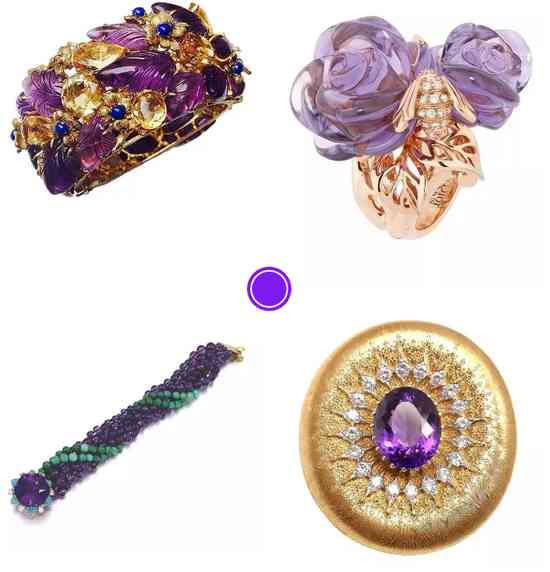 現(xiàn)在盡管紫晶的價(jià)格已經(jīng)不能和貴重寶石相提并論了,但它依舊是水晶系列里較為昂貴的品種,也依然因?yàn)樽约邯?dú)特且具有魅力的紫色出現(xiàn)在各大品牌的設(shè)計(jì)中。