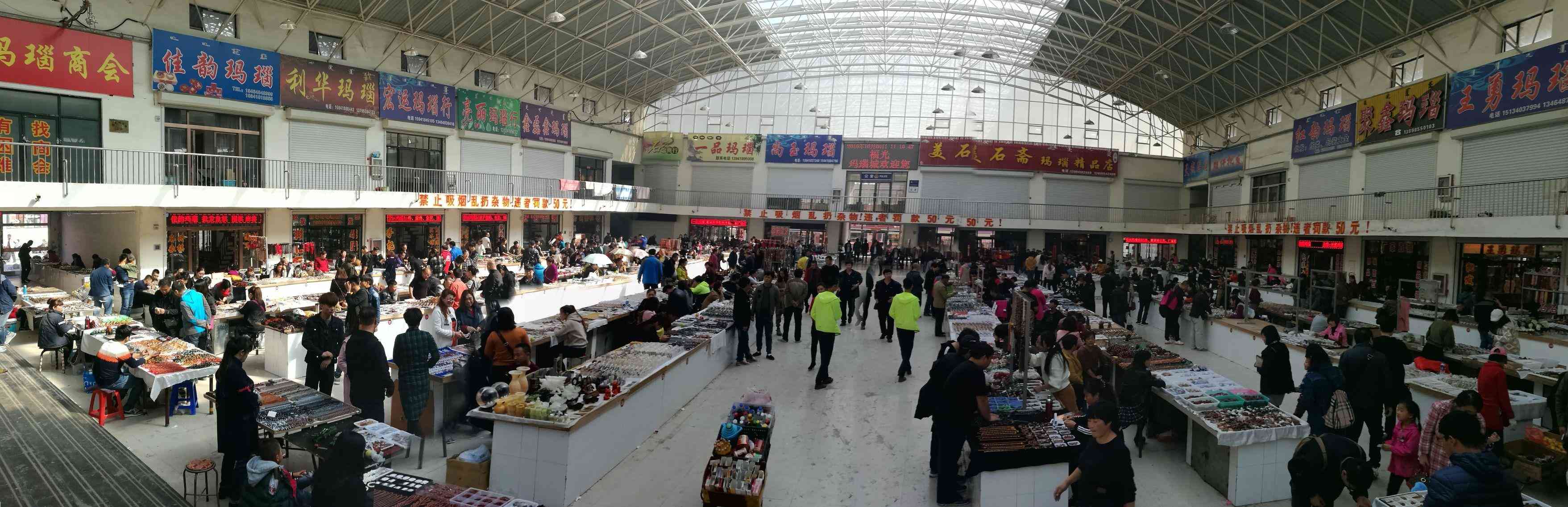 下面是兩個大廳的全景圖,張是建成十多年的瑪瑙交易市場;第二張是剛建成沒多久的戰(zhàn)國紅瑪瑙交易大市場。