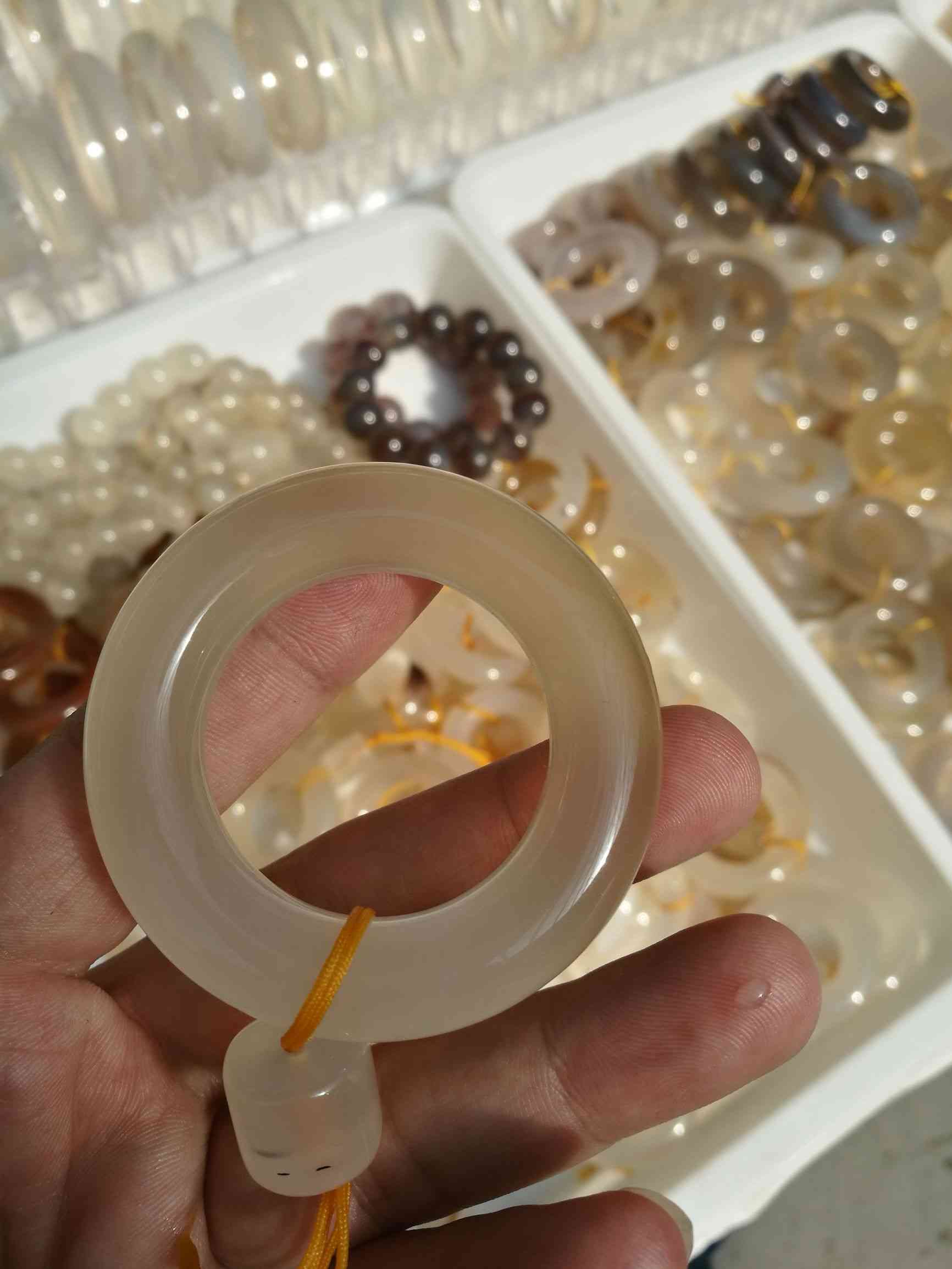 這個是阜新本地瑪瑙石出來的手鐲,價值1500元。