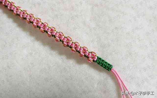 28、用綠色線包住另外所有的線再做一段1cm左右長的平結(jié)