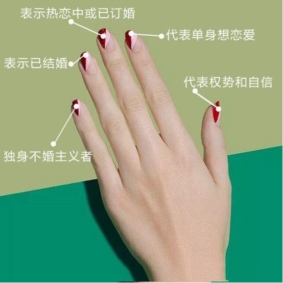 大拇指上戴戒指向來(lái)都是身份的象征,屬于古代貴族的佩戴方式,代表著權(quán)勢(shì)和自信。食指上戴戒指一般是單身未婚族向周?chē)鷤鬟f信息的——“我單身,可撩撥”,暗示著想要談一場(chǎng)戀愛(ài)。中指一般是戴訂婚戒指的,代表著愛(ài)情圓滿,即將步入婚姻殿堂。無(wú)名指則戴結(jié)婚戒指,因?yàn)闊o(wú)名指上有一根與心臟緊密相連的神經(jīng),將結(jié)婚戒指戴在無(wú)名指上,代表著對(duì)婚姻的忠誠(chéng)——恪守初心。小指戴戒指則暗示本人對(duì)婚姻不是太熱衷,不太想進(jìn)入婚姻的圍城,崇尚獨(dú)身主義。