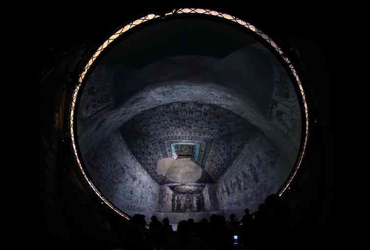 技術(shù)手段也在不斷升級(jí)博物館、藝術(shù)館展陳方式。此前徐匯藝術(shù)館曾舉辦的“樂者敦和·大音煌盛——敦煌壁畫樂舞專題展”,以敦煌榆林窟25窟的壁畫為靈感,借助全息投影技術(shù),呈現(xiàn)“唐朝9人女團(tuán)”,觀眾可以欣賞到活靈活現(xiàn)的敦煌樂舞表演。