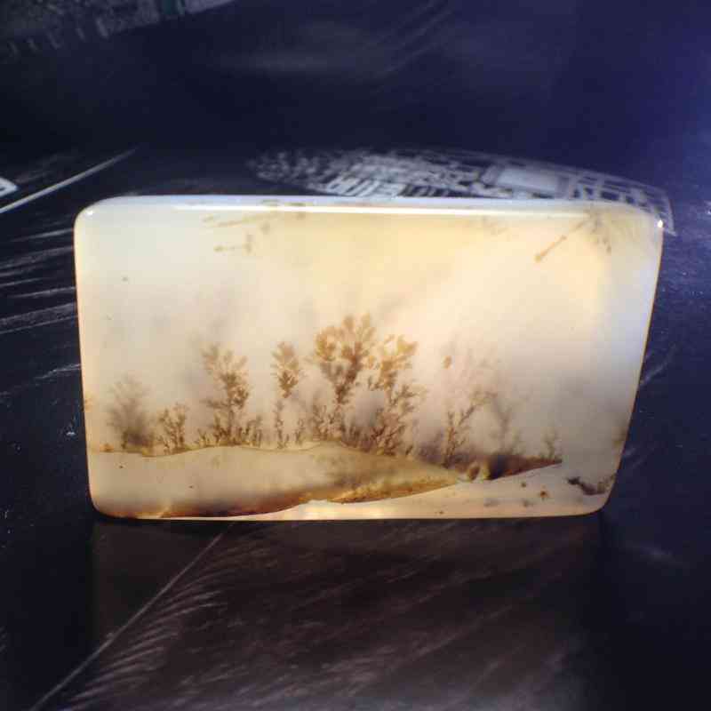 顏色:真海洋玉髓色澤潔白、表面光澤且呈半透明狀,假海洋玉髓的色、光、透明度均差一些,二者對比較為明顯。海洋玉髓圖案顏色分明,條帶十分明顯,其圖案清晰、線條自然,猶如一幅海洋水草圖。用石料仿制的假海洋玉髓其圖案是人工染色上去的,仔細(xì)觀察會發(fā)現(xiàn)其圖案比較模糊、線條不太自然,給人一種作假的痕跡。
