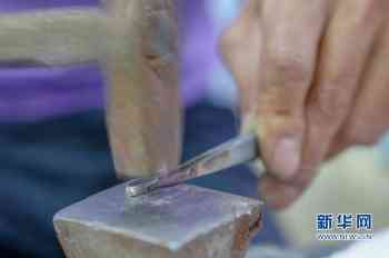 8月7日,上塘銀飾特色小鎮(zhèn),工匠展示當(dāng)?shù)貍鹘y(tǒng)打銀技藝。新華網(wǎng) 肖和勇 攝