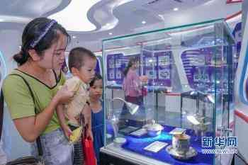 8月7日,上塘銀飾特色小鎮(zhèn),游客在銀飾展上觀看老銀飾精品。新華網(wǎng) 肖和勇 攝