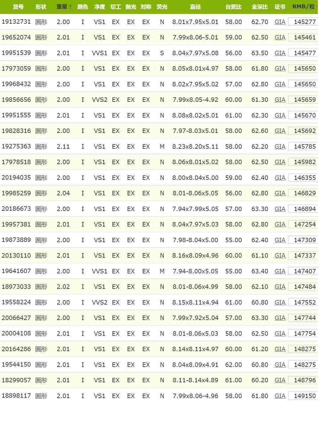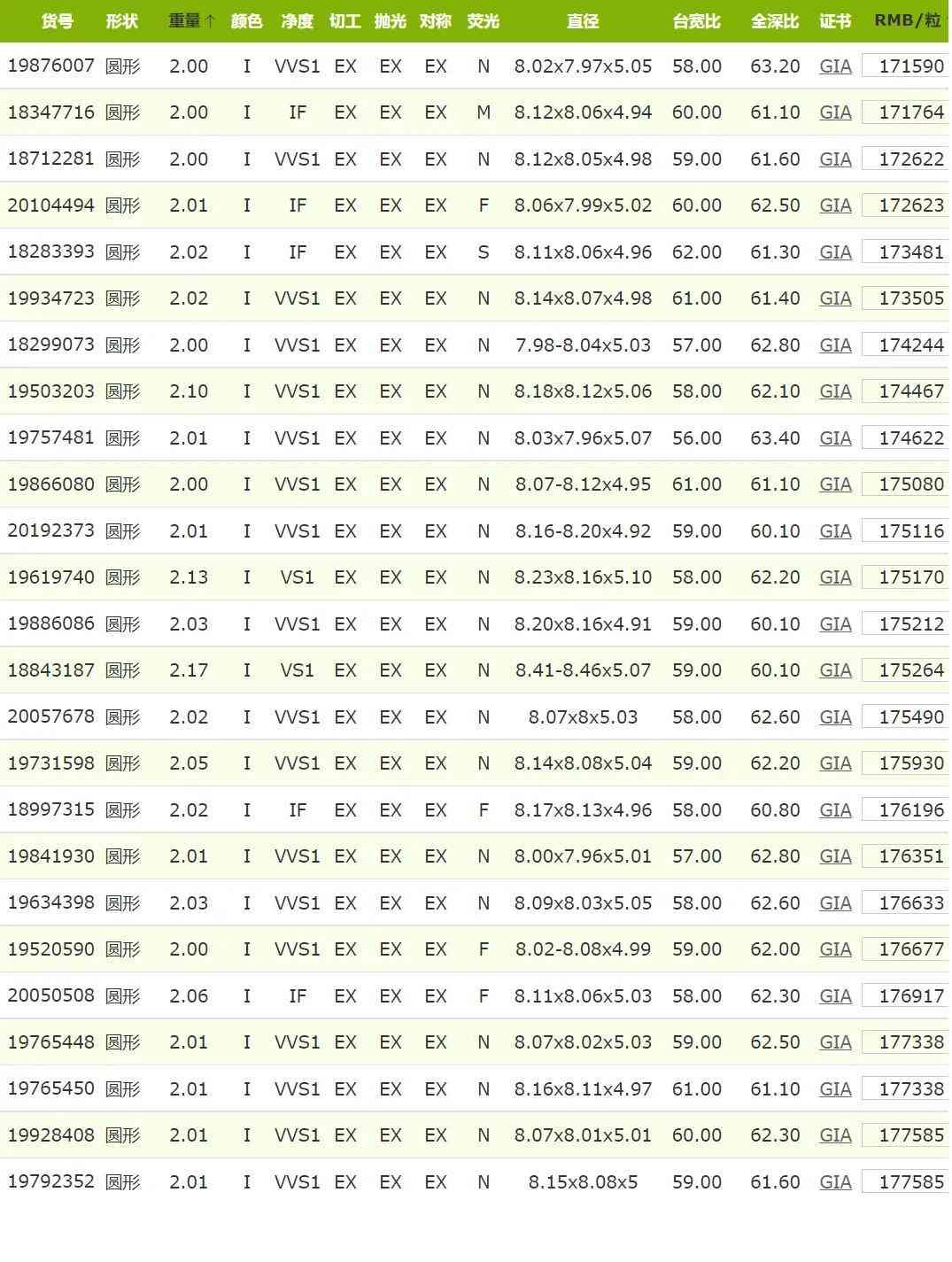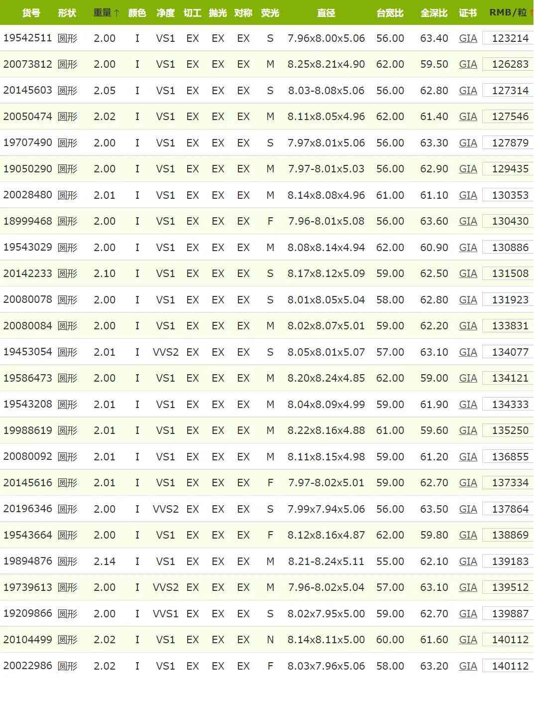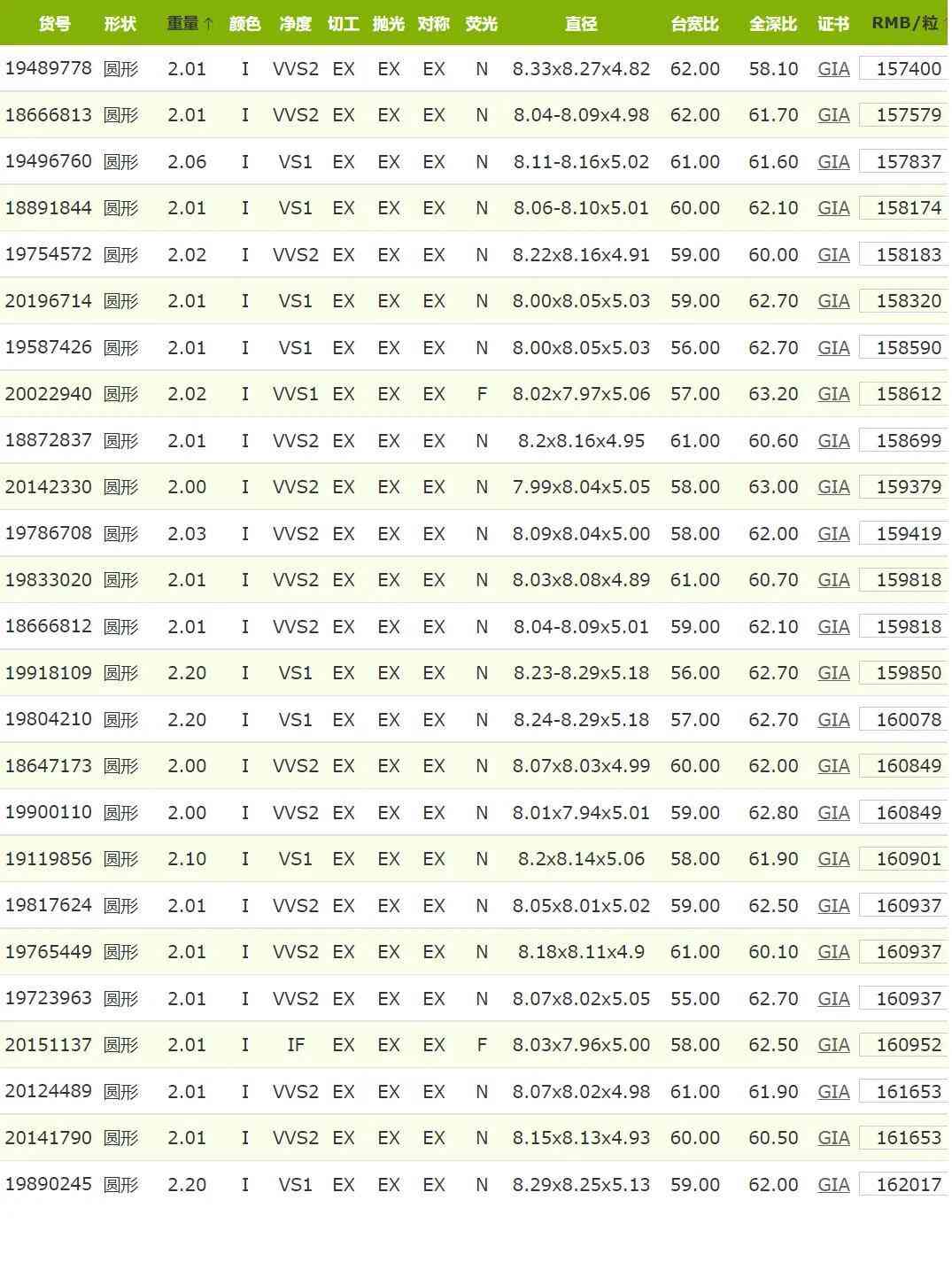 2克拉h(huán)色鉆石價格查詢(2克拉h(huán)色vs2 3ex鉆石價格)