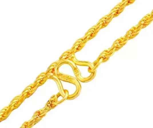 看著像是幾股金絲絞在一起編制而成,跟麻繩鏈相比,絞絲鏈更加秀氣。