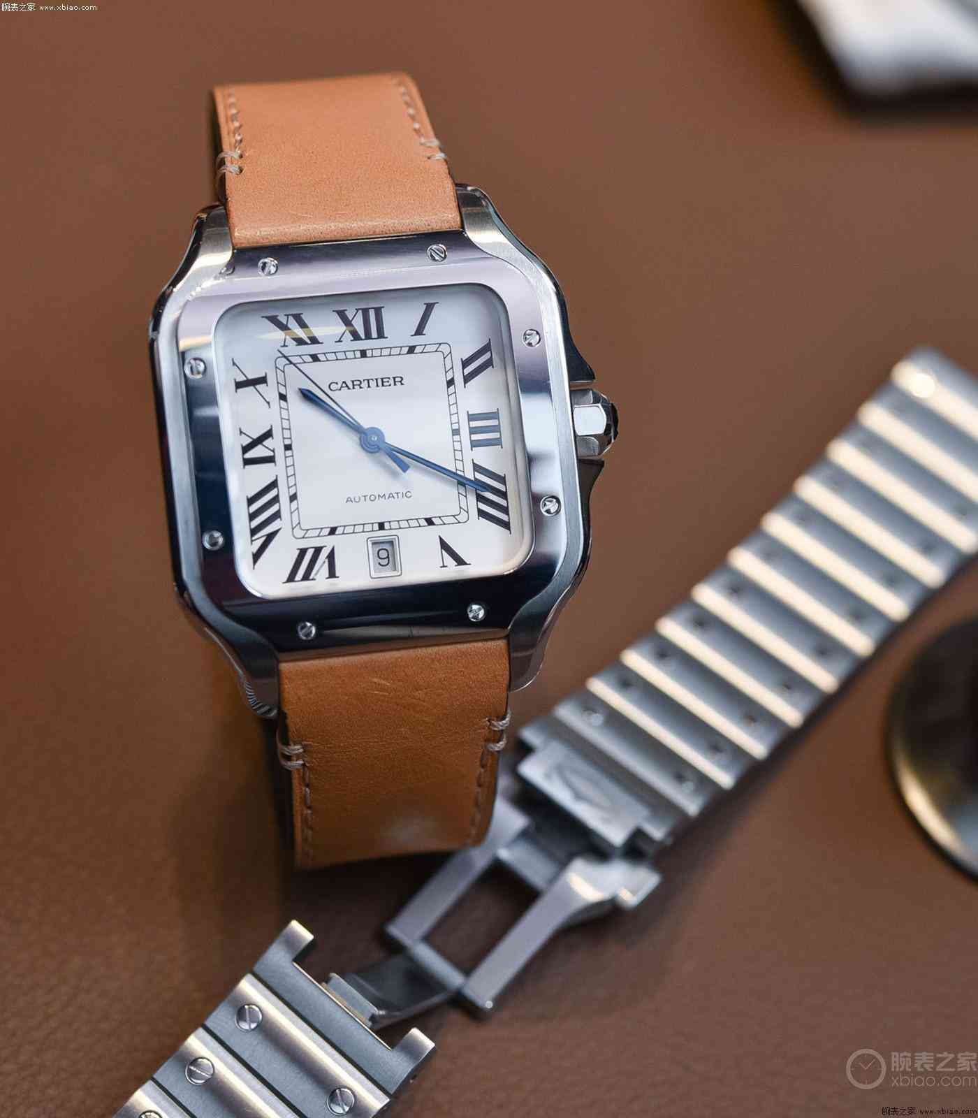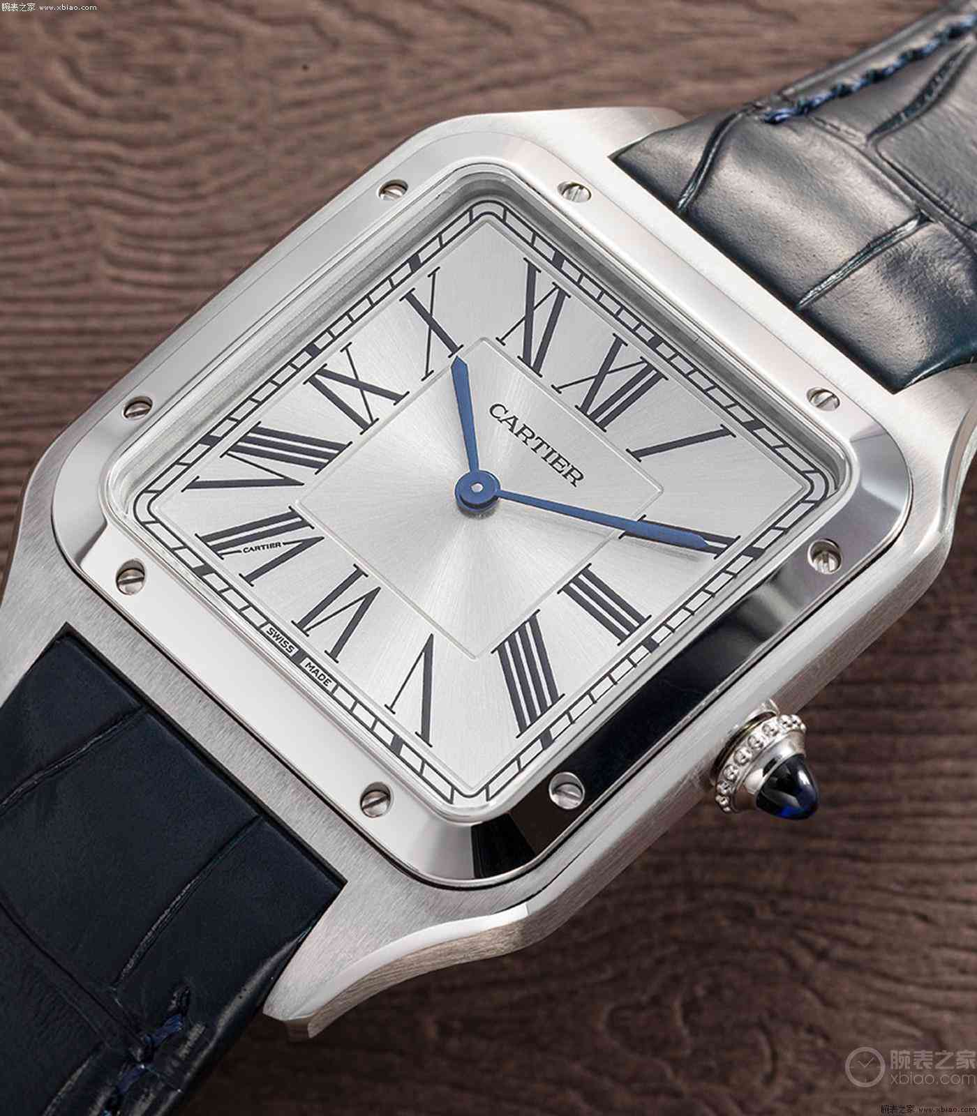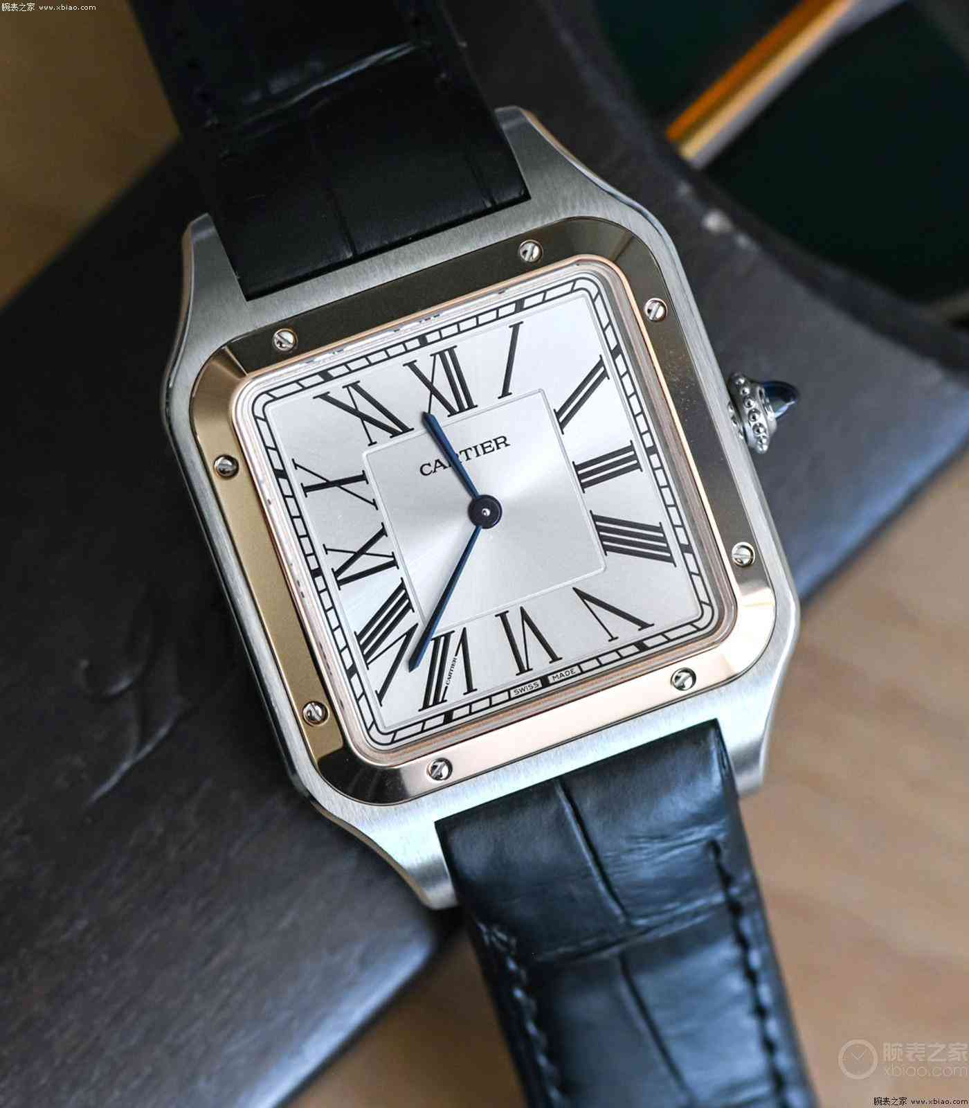 山度士杜蒙,是偏向于正裝的超薄款式,只配皮帶。雖然山度士杜蒙和常規(guī)款,外觀很像,但山度士杜蒙的厚度,非常薄。其中男款加大號(hào),使用卡地亞430MC手動(dòng)上弦機(jī)芯,即伯爵的430P機(jī)芯,大幅降低了手表厚度,山度士杜蒙厚度只有7.5毫米(小號(hào)款和中性款都是石英的)。隨之而來(lái)的是30米防水,可見(jiàn)是一只妥妥的正裝表。男款公價(jià)45900起步。