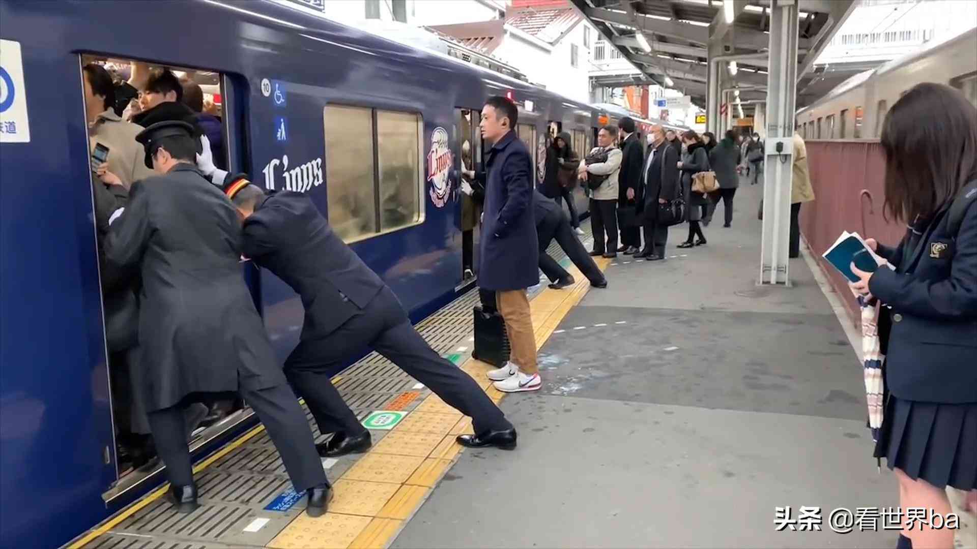 在日本,擠地鐵可是一個技術活,由此還衍生出一種叫“地鐵推手”的職業(yè),他們的工作就是負責把乘客塞進地鐵。當乘客擠不進去時,他們就反手來個神助攻,最后把門關上。
