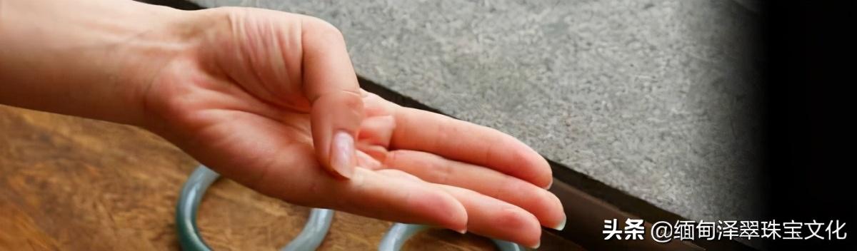 接下來說說翡翠戴上收以后大小是否合適會有什么樣的感受。將翡翠鐲子戴進(jìn)手腕前,應(yīng)該將五指合攏盡可能的靠近手心,然后將鐲子套入手掌最寬處嘗試一下感覺。如若你覺得鐲子稍有緊湊,但勉強(qiáng)用點(diǎn)力就能戴進(jìn)去,那么出現(xiàn)這種情景即是你最符合的鐲子圈口。主要是為了避免在平時生活中搖擺手臂時鐲子會丟掉,鐲子的內(nèi)徑尺寸最好緊湊為宜。