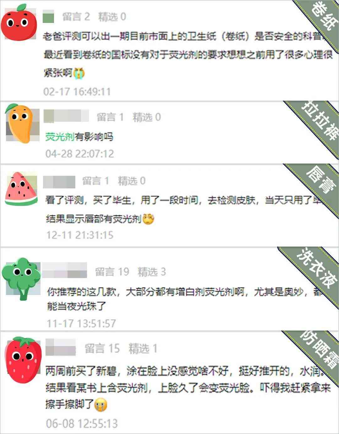 通過近幾年的評測和科普也能感受到,大家對于“熒光劑”的隱憂,遠(yuǎn)不止于此,而是體現(xiàn)在生活的方方面面——