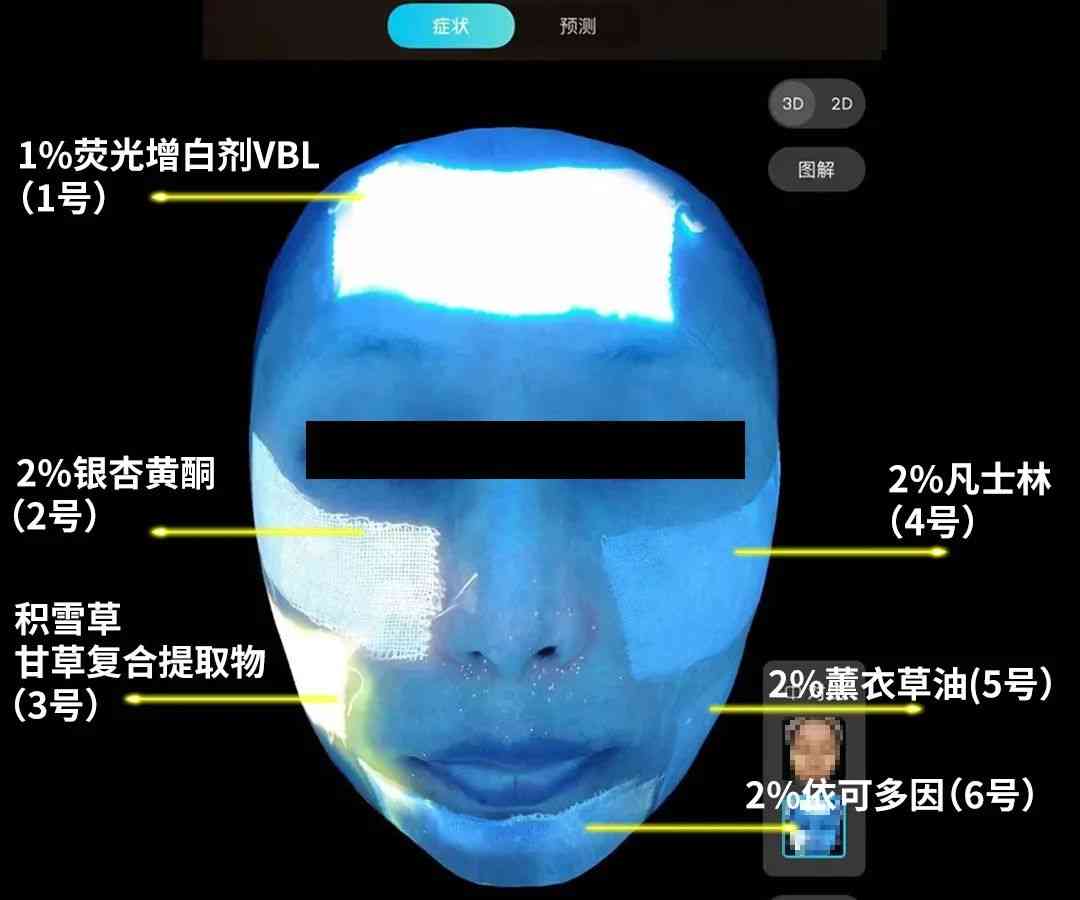 為了驗(yàn)證這些有較強(qiáng)熒光反應(yīng)的成分對皮膚的影響情況,研究員小姐姐“親自上臉”,把紗布浸泡在這些成分里,并使用皮膚成像儀進(jìn)行拍照。