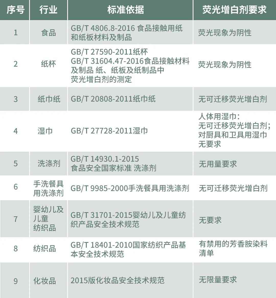 以下是我國對熒光增白劑的標(biāo)準(zhǔn):
