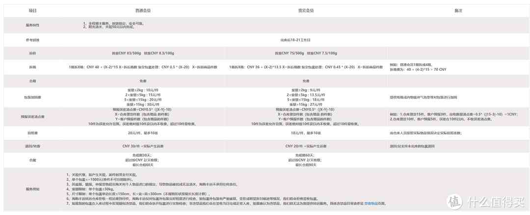 價格為普通會員,首重CNY 83/500g 續(xù)重CNY 8.3/100g;貴賓會員,首重CNY 75/500g 續(xù)重CNY 7.5/100g;合箱免費(也就是多個商品拆箱放在一起發(fā)用來節(jié)省費用);包裝加固額外收費(樂高、手表、電子產(chǎn)品一定要記得加固哦!);另外還有關(guān)稅,關(guān)稅是根據(jù)不同商品在進(jìn)入中國時繳納,大家需要購買時了解商品的大致關(guān)稅,以免加上后超過了國內(nèi)。此外,有些轉(zhuǎn)運公司提供了保價、開箱拍照等增值服務(wù),大家按需選擇即可。