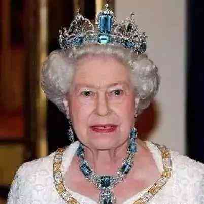 △英國女王的海藍(lán)寶皇冠,多年來不斷出鏡,配套的還有耳環(huán)、項(xiàng)鏈,克拉數(shù)超大