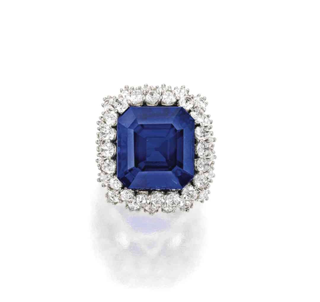 上圖這顆矩形階梯形切割藍(lán)寶石重27.68克拉,產(chǎn)自克什米爾,無加熱處理,皇家藍(lán)色。2015年蘇富比拍賣會上,成交價格為52280000港元。這顆藍(lán)寶石和上面的“日出”紅寶石,重量差不多,顏色都是,價格之差竟有四倍左右!