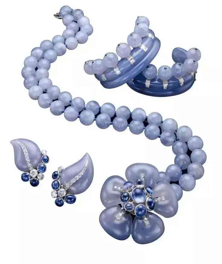 還有那個寶姐已經(jīng)介紹過好多次的溫莎公爵夫人,記不得名字也沒關系,看到這套藍玉髓珠寶,你肯定不陌生~沒錯,這套玉髓就是她珍藏的寶貝。