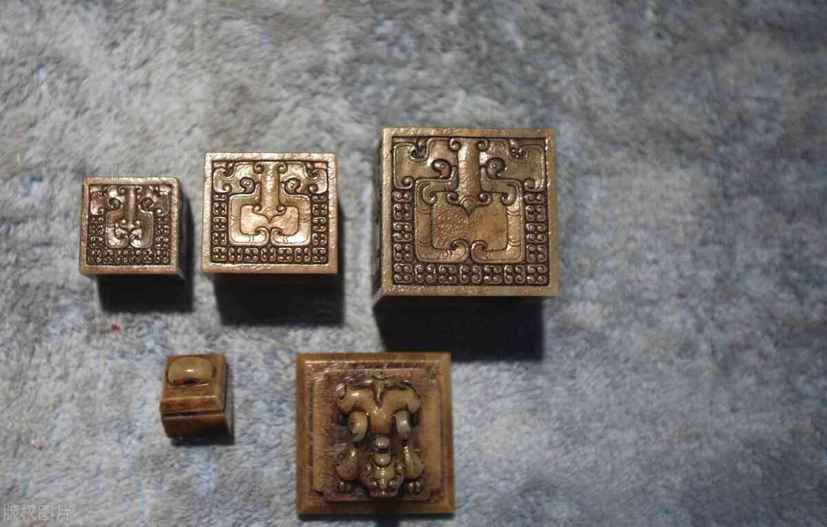 漢代河磨玉印章五件套