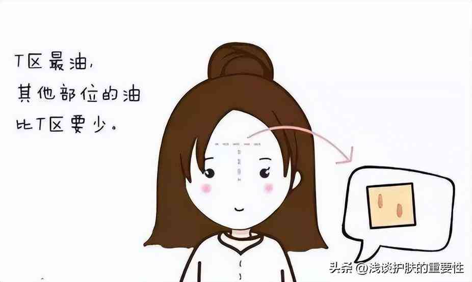 T區(qū)容易出油,額頭、鼻梁、下頜有油光,T區(qū)毛孔比較明顯,易長粉刺,其余部分則干燥。