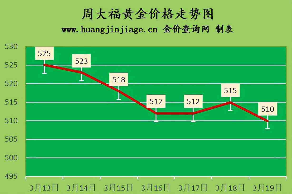 周大福黃金價(jià)格510元/克(跌5元),六福黃金價(jià)格510元/克(跌5元),周生生黃金價(jià)格510元/克(跌4元),金至尊金價(jià)510元/克(跌5元),謝瑞麟金價(jià)510元/克(跌5元),老鳳祥黃金價(jià)格516元/克(),老廟黃金價(jià)格510元/克(跌5元),菜百金價(jià)509元/克(-),周大生金價(jià)510元/克(跌5元),中國(guó)黃金價(jià)格506元(-),金大福金價(jià)510元/克(),潮宏基金價(jià)510元/克(跌5元)。