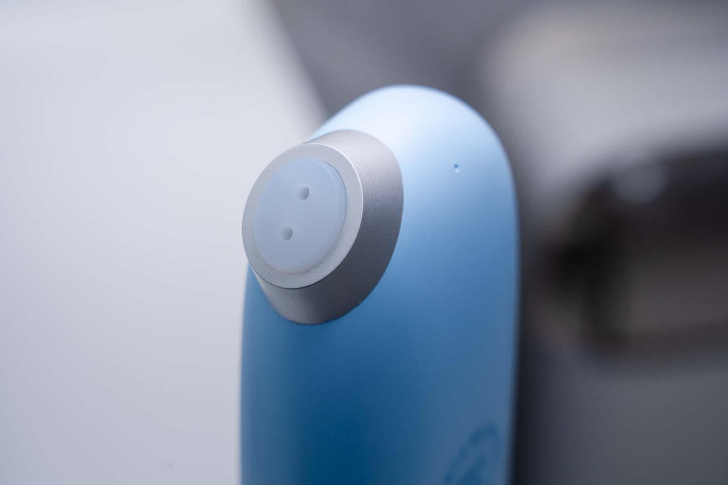換個(gè)小圓口的吸嘴,準(zhǔn)備開(kāi)始吸黑頭。按下電源鍵即可開(kāi)動(dòng),再按模式鍵可以切換不同的模式,同時(shí)吸嘴會(huì)有藍(lán)光冷敷,紅光熱敷和白光常溫清潔顯示當(dāng)前的工作狀態(tài)。