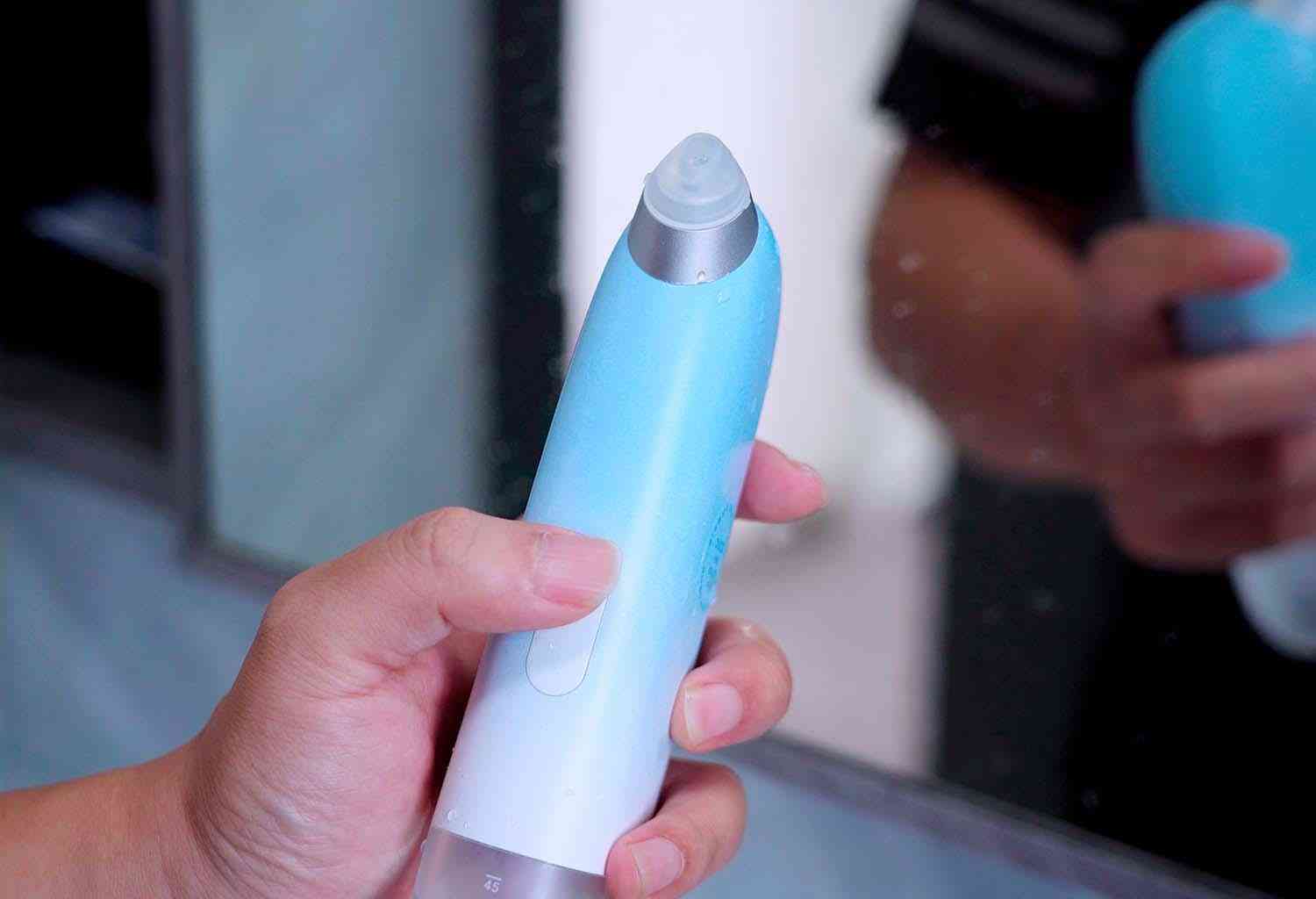 安裝專用吸嘴,點(diǎn)按上鍵切換到藍(lán)光冷敷模式。通過(guò)藍(lán)光冷敷按摩還挺舒服的。這個(gè)過(guò)程中水不會(huì)接觸到皮膚,因此可以用純凈水即可,避免浪費(fèi)護(hù)理液。同時(shí)機(jī)內(nèi)還增加了自清潔的功能。因?yàn)殚L(zhǎng)期使用小氣泡機(jī)易導(dǎo)致細(xì)菌滋生。而新一代的DOCO創(chuàng)新自清潔功能,搭配冷敷吸頭形成真空閉環(huán),水流清潔機(jī)器內(nèi)部,塑造潔凈護(hù)膚環(huán)境。