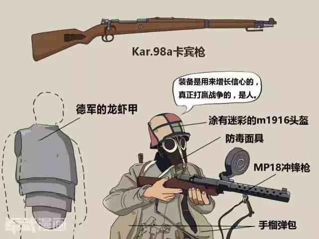 突擊隊(duì)的先進(jìn)也體現(xiàn)在裝備上,這種采用“滲透突擊戰(zhàn)術(shù)”的小分隊(duì)通常裝備精良,一個(gè)小戰(zhàn)斗群可裝備輕機(jī)槍、迫擊炮、火焰噴射器、榴彈發(fā)射器和手榴彈等。并且在各國(guó)都認(rèn)為步槍一寸長(zhǎng)一寸強(qiáng)的一戰(zhàn)中(為了拼刺刀時(shí)槍能當(dāng)長(zhǎng)矛使),這群德國(guó)士兵們更鐘愛較為短小精干的Kar.98a式卡賓槍,他們認(rèn)為短槍在塹壕戰(zhàn)中行動(dòng)能更加迅速靈活。另外,突擊隊(duì)還率先使用了先進(jìn)的沖鋒槍—MP18。