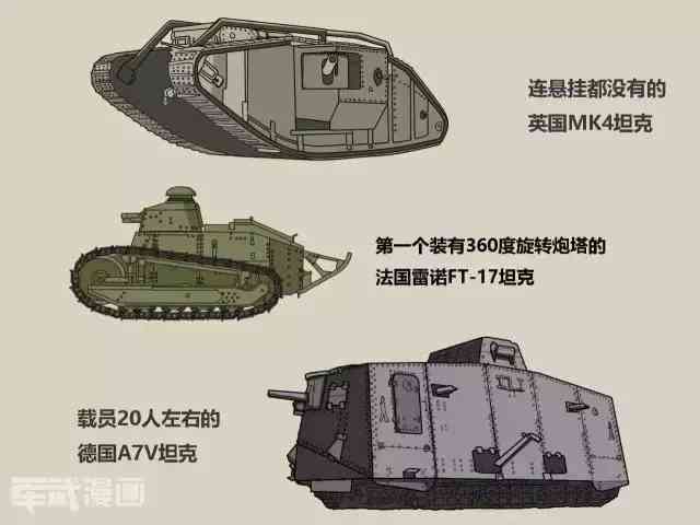 為了能打贏塹壕戰(zhàn),先進(jìn)但不成熟的武器大量運(yùn)用,坦克就是其中之一。1915年,當(dāng)時(shí)還是英國(guó)海軍部長(zhǎng)得溫斯頓·丘吉爾接受了斯文頓上校的一個(gè)新武器設(shè)計(jì)方案,并非法挪用資金建立了“陸地戰(zhàn)艦委員會(huì)”,就這樣,歷史上輛坦克,綽號(hào)“小游民”,在英國(guó)海軍中誕生了。后又經(jīng)過研發(fā),生產(chǎn)出“大游民”也就是著名的馬克1型坦克。1916年9月,批生產(chǎn)出來的60輛馬克一參加了索姆河戰(zhàn)役,其中49輛坦克成功運(yùn)上火車,隨后17輛在趕赴前線的路上因?yàn)橄萑肽嗫踊驒C(jī)械故障OUT了,其余32輛在開戰(zhàn)前又有14輛因?yàn)楦鞣N原因退出戰(zhàn)斗序列,最后真正上戰(zhàn)場(chǎng)的只有18輛,仗還沒開打,大多數(shù)坦克都折在路上了。而且馬克1里的坦克兵非常難受,坦克內(nèi)部溫度很高且布滿濃煙,巨大的發(fā)動(dòng)機(jī)轟鳴聲,而且坦克還沒有減震器。(后來英國(guó)大量使用性能較優(yōu)異的馬克4,仍然沒有減震器)。不過作為坦克鼻祖,馬克1對(duì)其他各國(guó)的震動(dòng)很大,使得世界各國(guó)開始研發(fā)自己的坦克。