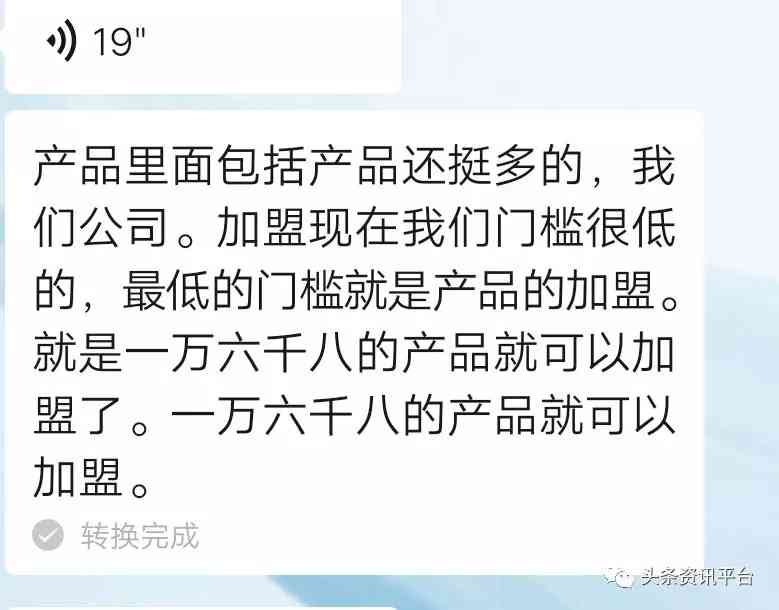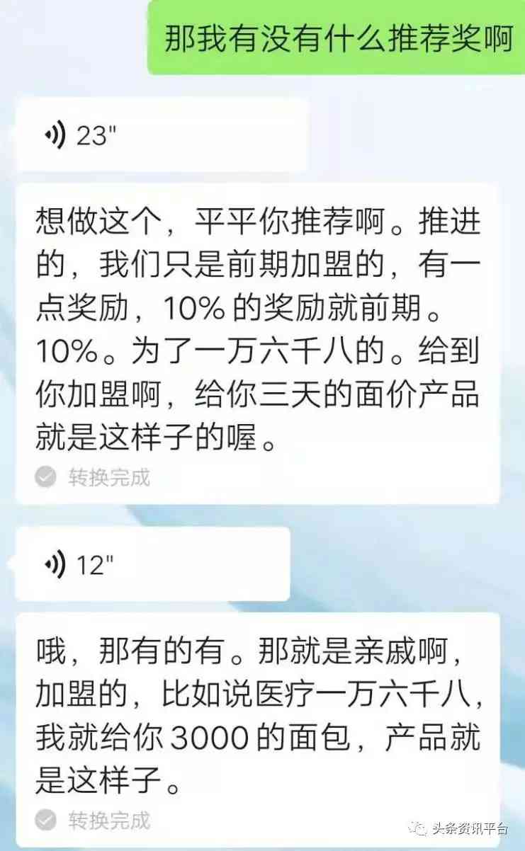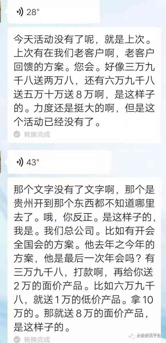 雖然這個(gè)制度單一,但是葉先生表示,每年的活動(dòng)和福利都不相同:“比如去年到今年的活動(dòng)是只要你打款三萬九千八就送價(jià)值兩萬的產(chǎn)品,六萬九千八就送價(jià)值五萬的產(chǎn)品,消費(fèi)十萬就送價(jià)值八萬的產(chǎn)品。但因?yàn)榍岸螘r(shí)間集團(tuán)開了年會(huì),在年會(huì)上取消了其他的方案,只留下了16800這個(gè)最低門檻?!?/p>