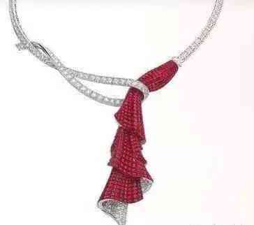 后來用寶石做成絲巾的樣式,把絲巾的垂墜感和輕柔感用寶石鑲嵌出來,怎能不讓人驚嘆。