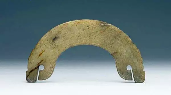 璜:半壁為璜,用于祭禮北方。多數(shù)璜只是璧的三分之一、四分之一,只有少數(shù)接近二分之一,有扇形、半環(huán)形、半月形、拱橋形等