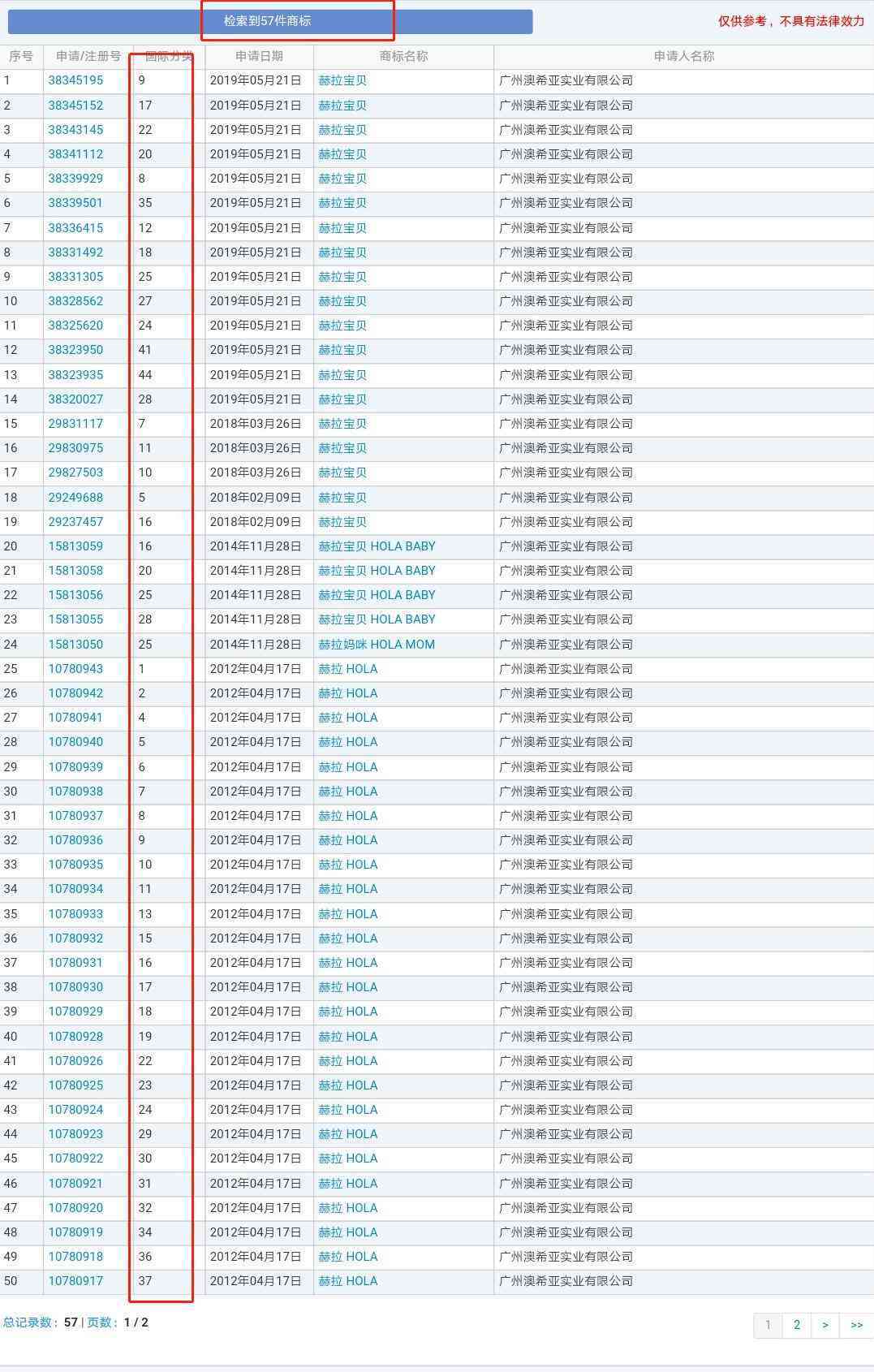 通過(guò)查詢商標(biāo)網(wǎng)顯示,該公司共申請(qǐng)了57件關(guān)于“赫拉”字樣的商標(biāo),涵蓋了多個(gè)類別,但是其中并沒(méi)有一件商標(biāo)申請(qǐng)服務(wù)于第3類化妝品。