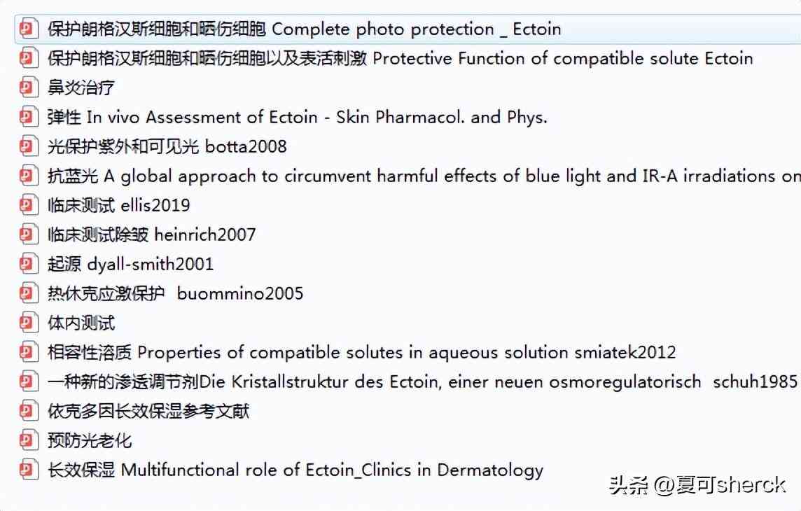 依克多因,也是老熟人了。大名是:四氫甲基嘧啶羧酸。成分表里出現(xiàn)要記得是誰(shuí)。同時(shí)不要給叔看到酸字就說(shuō)他是酸,剝脫角質(zhì)啥啥的。栓Q+1