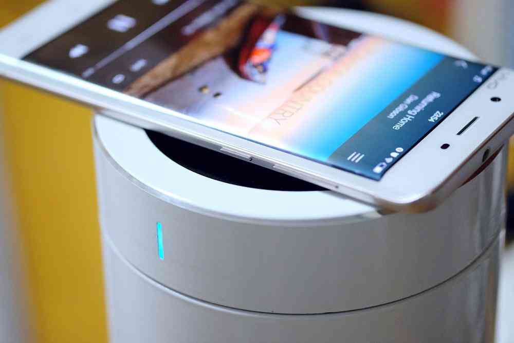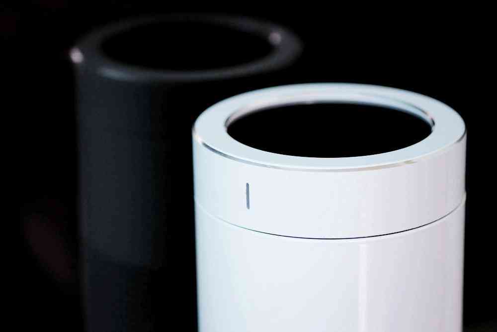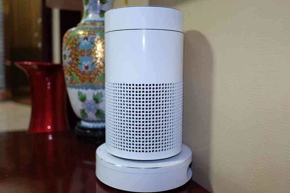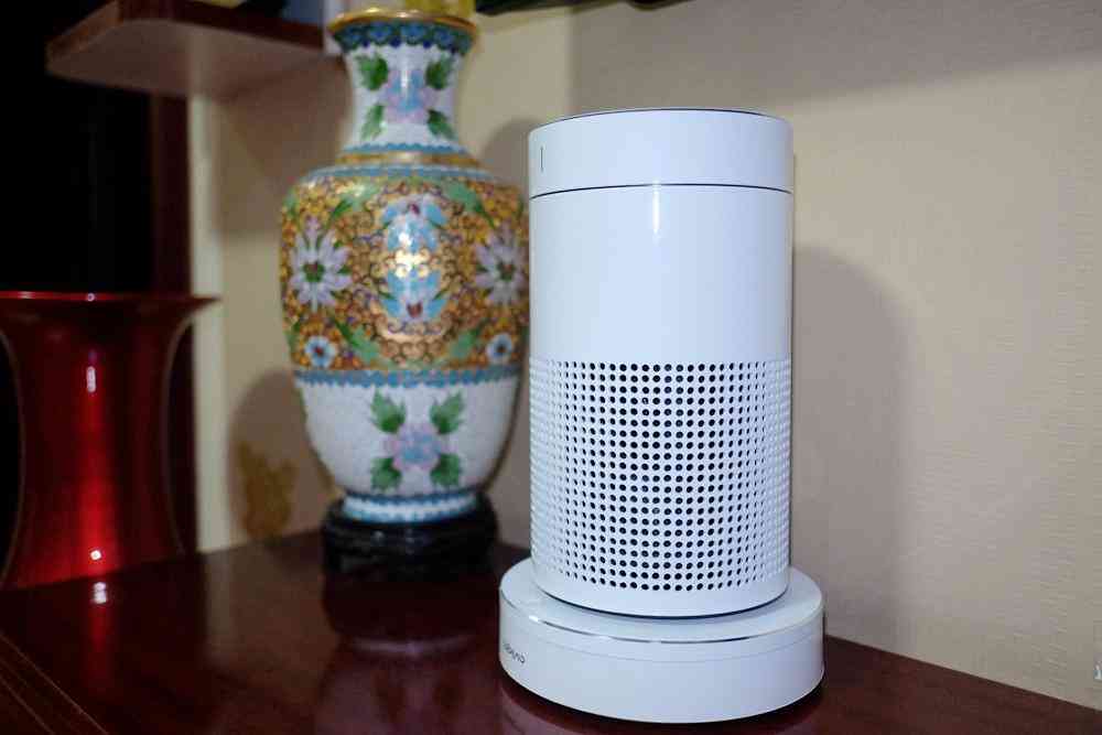 因?yàn)樾跘1的整體機(jī)身呈圓柱形,為了讓它放置時(shí)更加穩(wěn)固些,設(shè)計(jì)師巧妙地將底座的周圍設(shè)計(jì)得更大些,并且在底座底面加入硅膠腳墊。