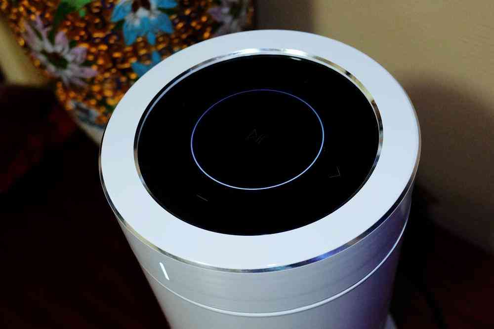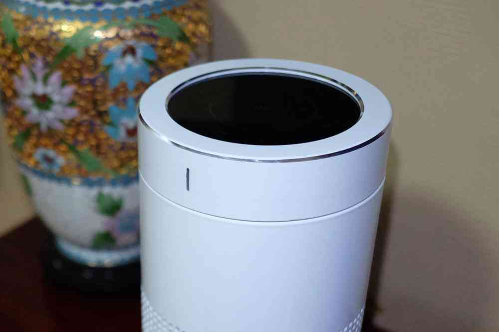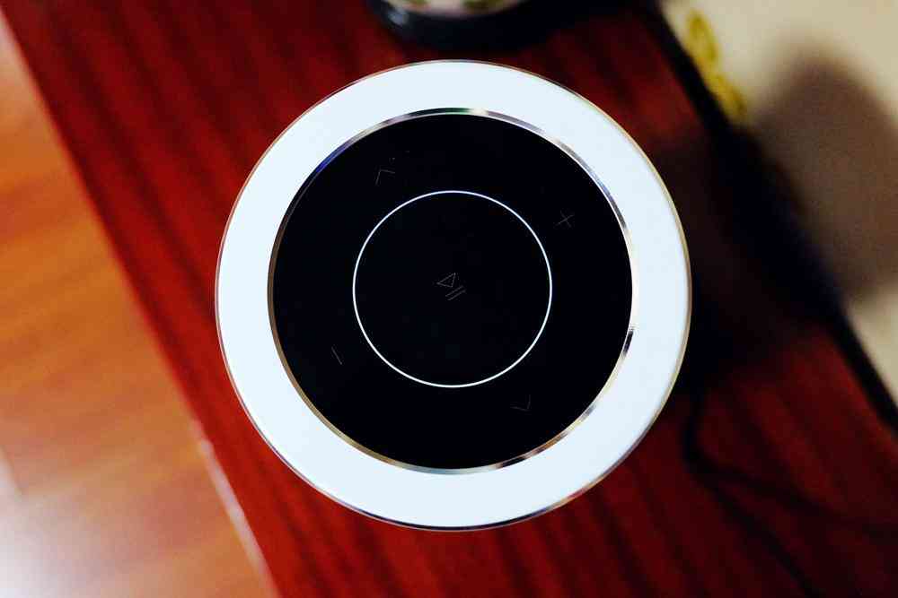 小愛A1機(jī)身頂部是它的靜電玻璃操控面板,采用觸控設(shè)計(jì),共有5個(gè)按鍵,分別是音量調(diào)節(jié)按鍵、上下首切換按鍵和播放暫停鍵。這些按鍵反應(yīng)比較靈敏的,間距也比較大,加上設(shè)有白色環(huán)形背光燈,所以誤操率很低。
