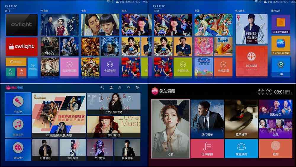 愛浪AOS系統(tǒng)給我的印象是它的界面還不夠精美,但勝在簡潔條理,容易上手。界面采用左右滑動(dòng)式瀏覽,分為熱門、電視劇、電影、綜藝、動(dòng)漫、咪咕音樂和我的應(yīng)用共7個(gè)部分,其中影視部分資源因?yàn)榈玫姐y河牌照授權(quán),所以內(nèi)容相當(dāng)豐富,尤其是4K影視資源。小愛A1的音樂資源也非常豐富,它獲得咪咕音樂的授權(quán),海量的資源讓你聽個(gè)夠、唱個(gè)夠。值得一提的是,它具備一鍵播歌功能,長按2秒以上播放暫停鍵,小愛A1就能自動(dòng)隨機(jī)播放咪咕音樂曲庫里的歌曲。