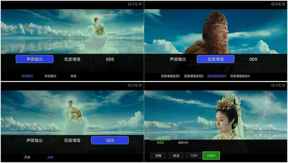 如果選擇聲音本地模式輸出的話,還可以選擇全頻模式、伴侶模式或者電視,同時(shí)低頻增強(qiáng)也有四種級(jí)別,也可以開啟GDS虛擬環(huán)繞聲,有效地改善大多數(shù)電視機(jī)內(nèi)置音箱音低音不足、音質(zhì)一般、聲場狹窄等不足。