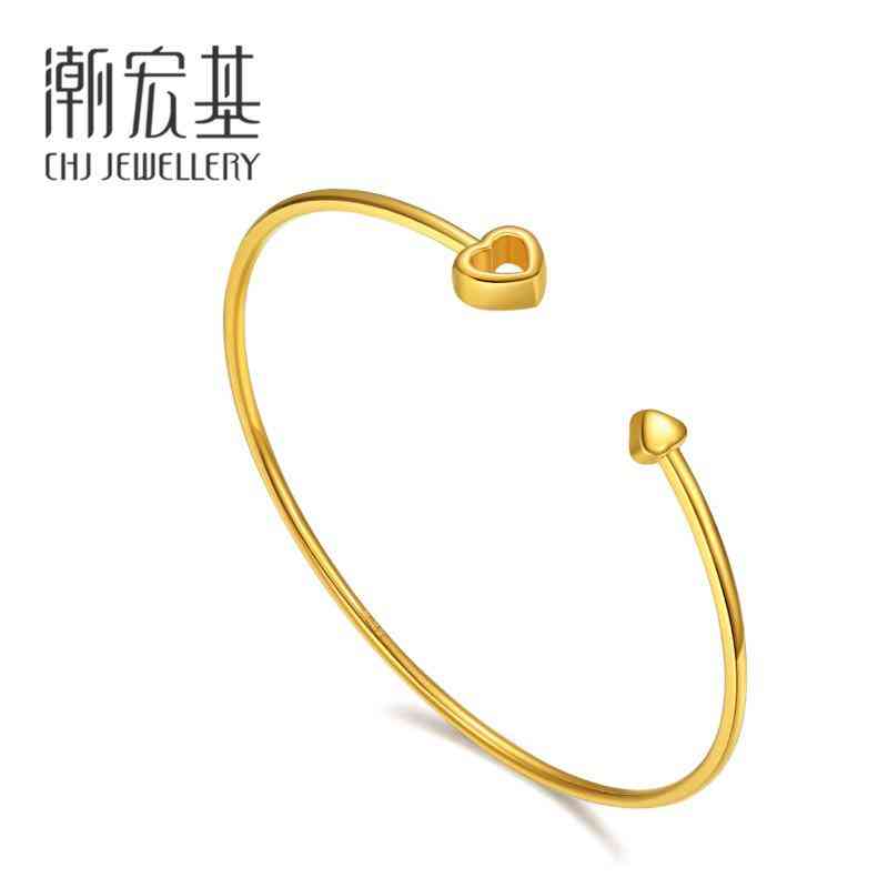TOP5:潮宏基 腕格&腕心 黃金手鐲5G足金鐲子開口鐲手飾女禮物 MJ
